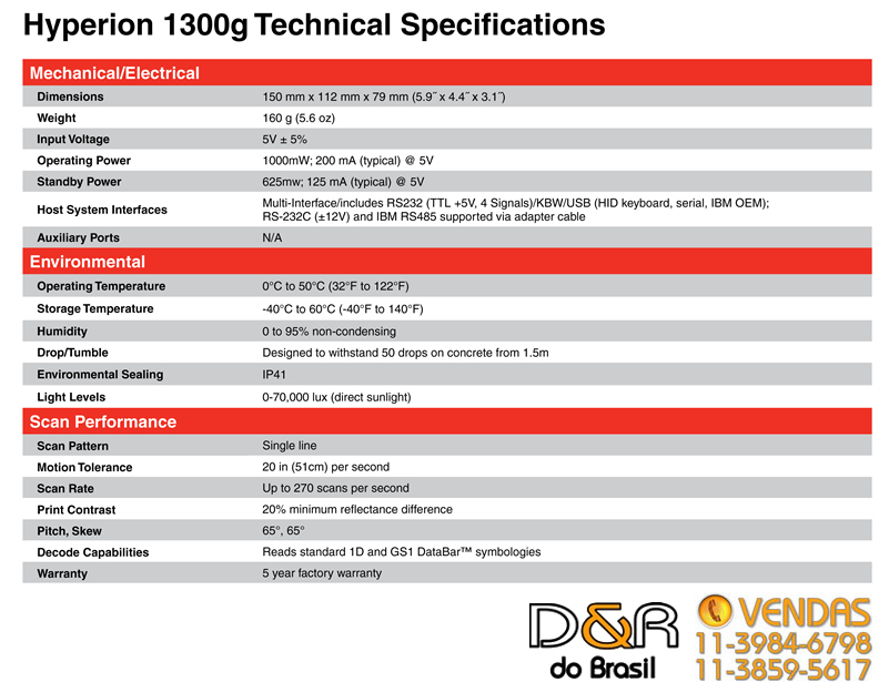 Honeywell - Hyperion 1300G - Leitor De Código De Barras 1D, Preto, Cabo Reto Usb Tipo A De 3M